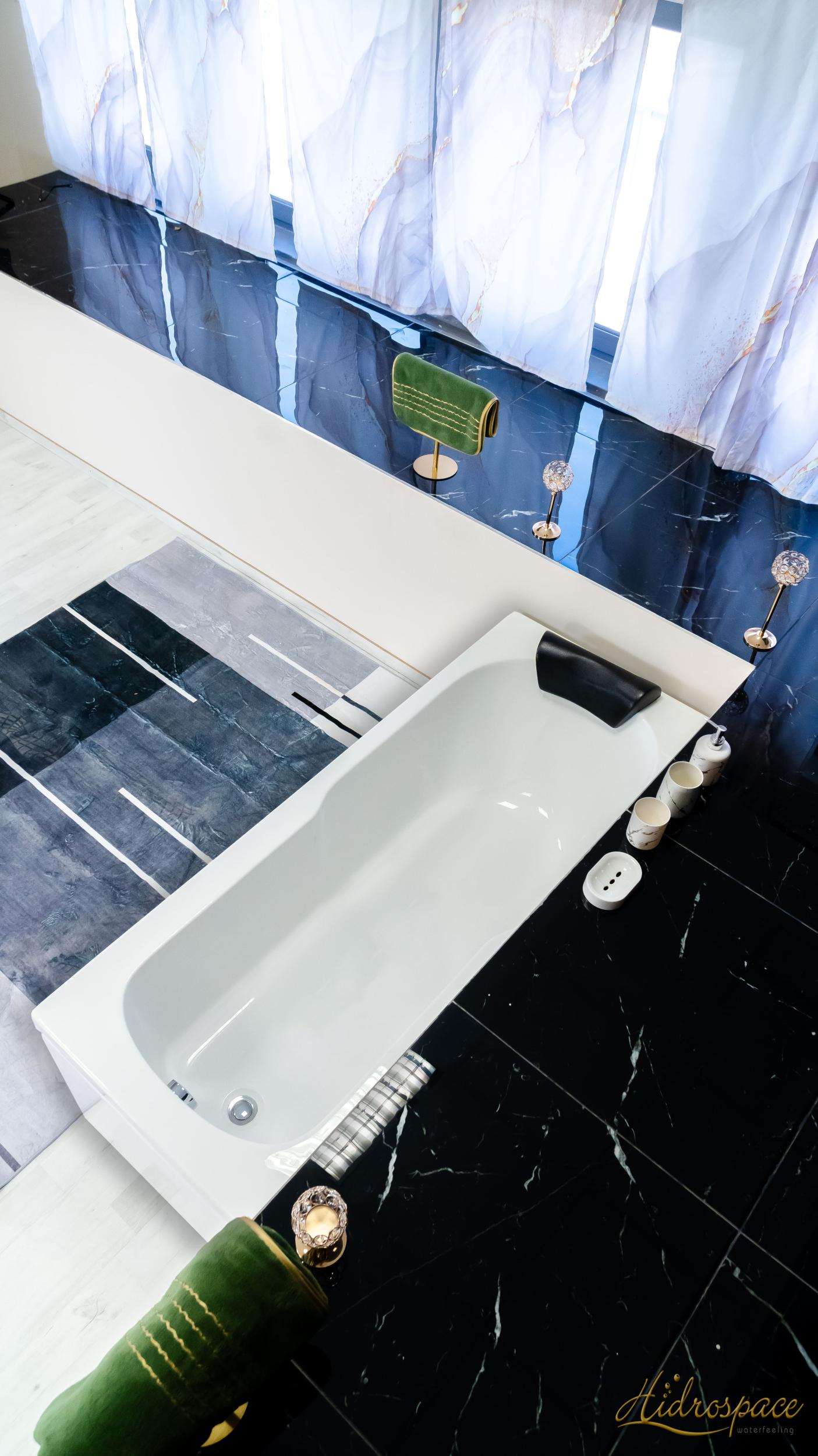 MATERIALI: Acrilico sanitario, rinforzata con pannelli rigidi e vetroresia; Telaio in ferro zincato con piedini regolabili; sistema di scarico con piletta e troppo pieno.