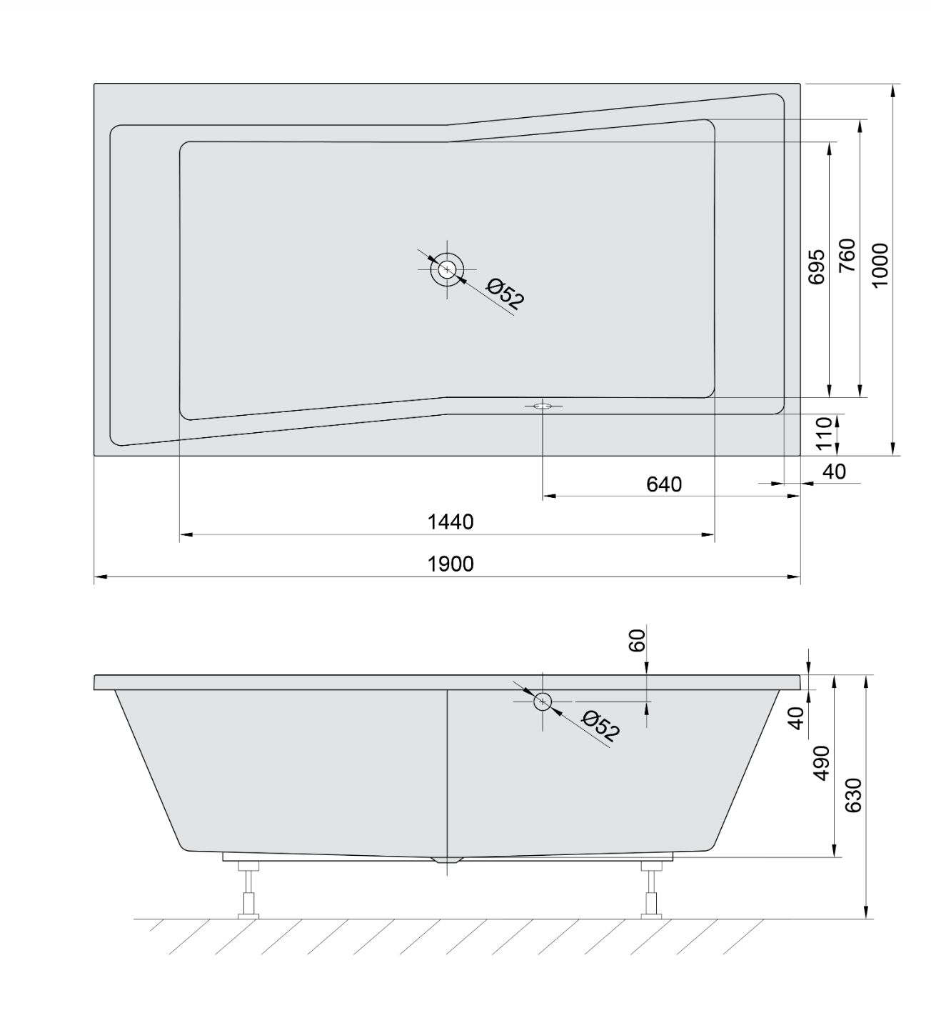 - Guscio realizzato in acrilico colato rinforzato con vetroresina;