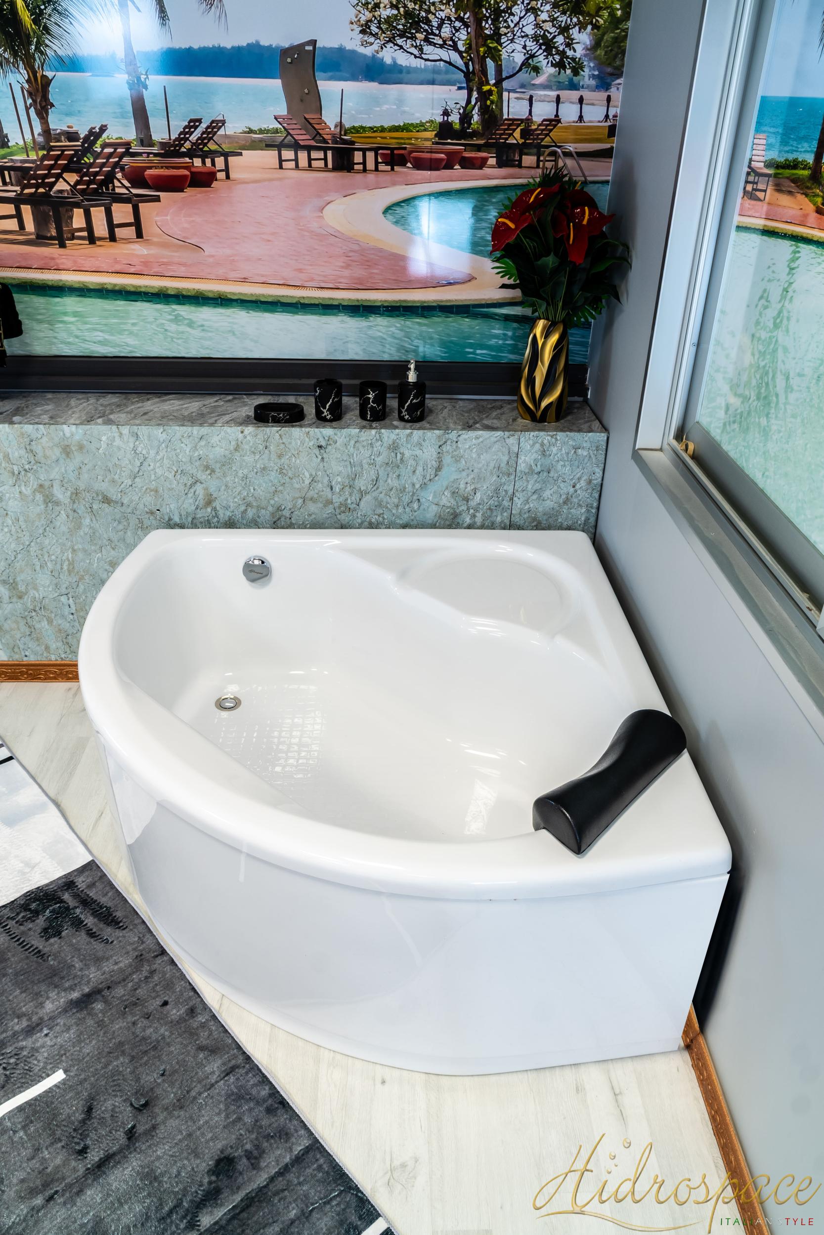 Questa vasca da bagno angolare, essendo caratterizzata dalle misure sopraindicate, è possibile collocarla in quasi tutti i locali bagno esistenti senza la necessità di uno spazio troppo ampio. La comoda seduta nell'angolo permette di utilizzare la vasca non solo per il bagno ma anche per idromassaggiare piedi e gambe oppure per effettuare una rilassante pedicure. La sua apertura negli angoli interni garantisce un volume interno assolutamente ampio e decisamente comodo da utilizzare anche in due. Il pannello frontale sobrio ed uniforme garantisce un aspetto armonioso ed equilibrato. Infatti, questa vasca da bagno angolare è pensata per coloro i quali necessitano di un prodotto ampio, gradevole ed equilibrato, il tutto con un rapporto qualità prezzo assolutamente vantaggioso. È possibile inserirla in qualsiasi ambientazione bagno prescelta grazie alla sua duttilità.