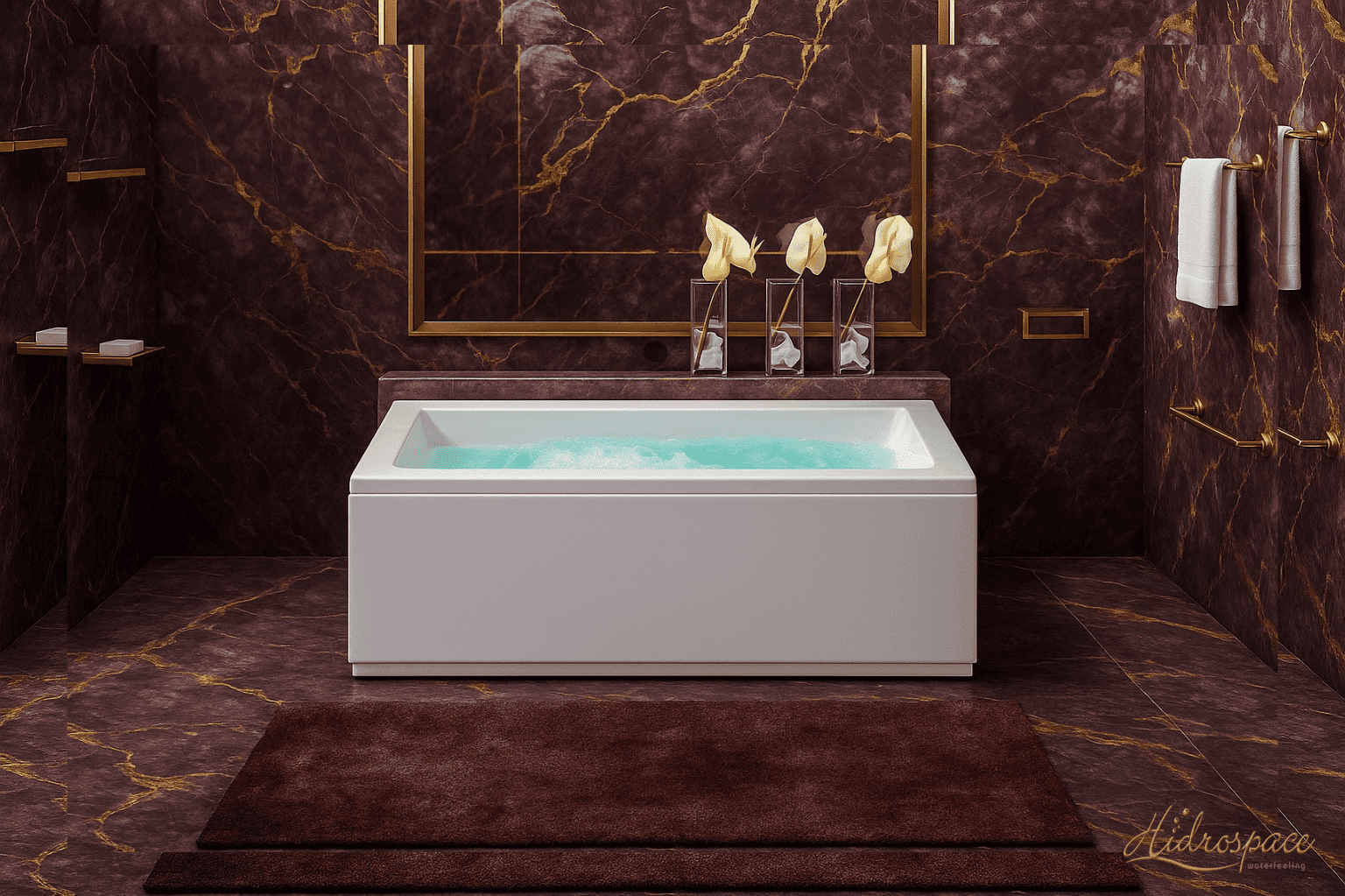 La forma pura della ISEO 180×90 è progettata per integrarsi armoniosamente in ambienti moderni, minimalisti o classici. Il doppio schienale asimmetrico garantisce un comfort ergonomico, mentre il bordo generoso consente l'installazione di rubinetteria e accessori con totale libertà.