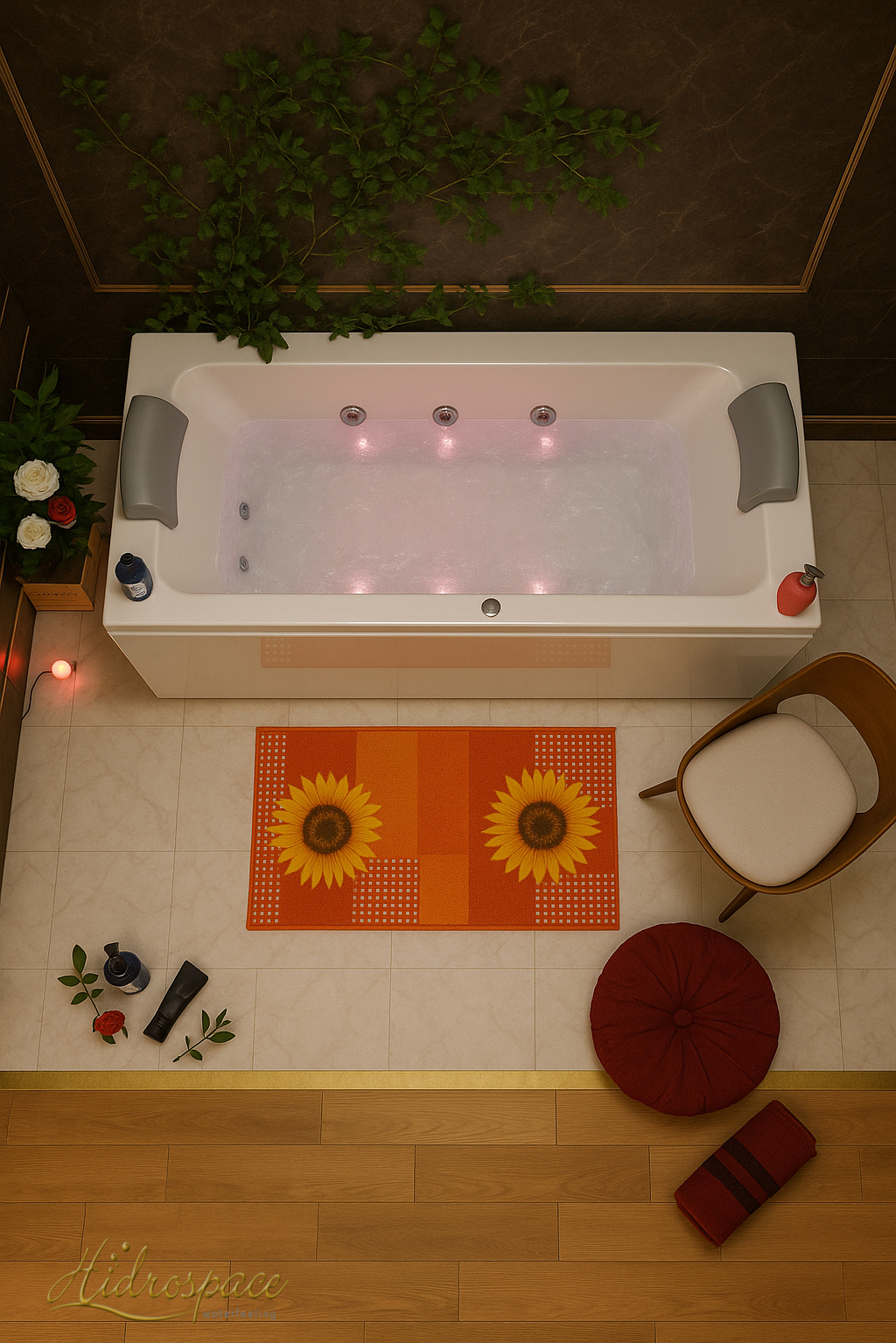 Grazie al doppio schienale simmetrico, l’utilizzo di questa vasca diventa fluido da entrambi i lati, perfetto per due persone. Il bordo ampio permette una personalizzazione libera: rubinetteria bordo vasca, pulsanti di controllo o supporti luminosi possono essere installati senza limiti estetici.