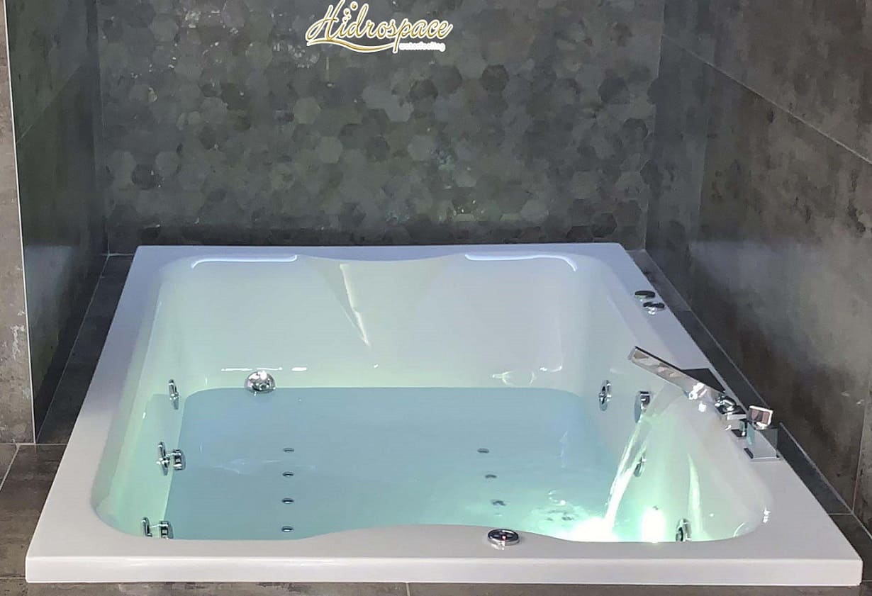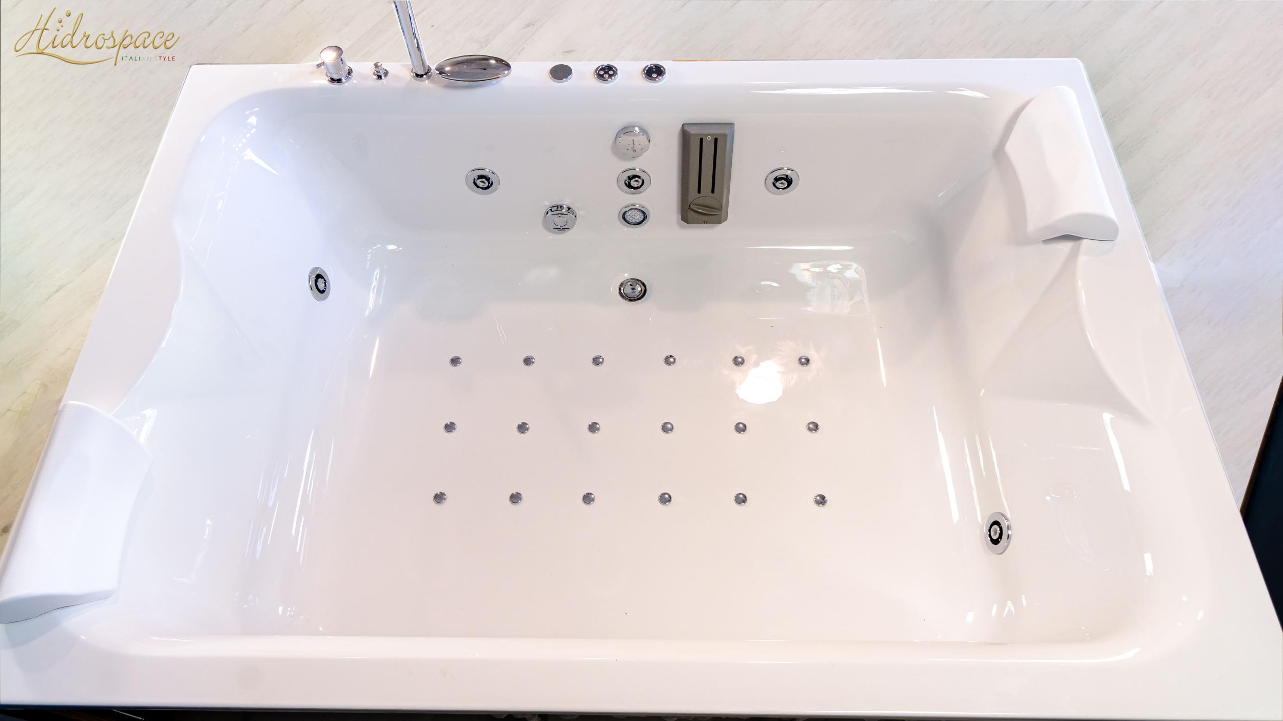 Sistema idromassaggio professionale Whirpool, con tubazioni maggiorate (40 mm circuito acqua, 15 mm circuito aria) e bocchette regolabili, per un massaggio intenso e avvolgente.