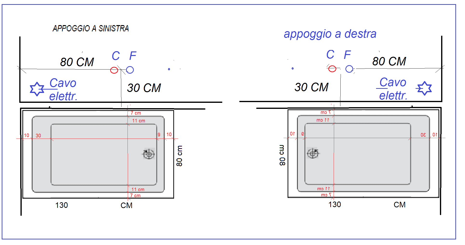 Telaio in acciaio zincato orizzontale con tubolare quadro 30 x 30 mm e verticale con barre filettate  da mm 12 – il telaio è smontabile per facilitare l’inserimento della vasca e per facilitare il montaggio nei bagni piccoli;