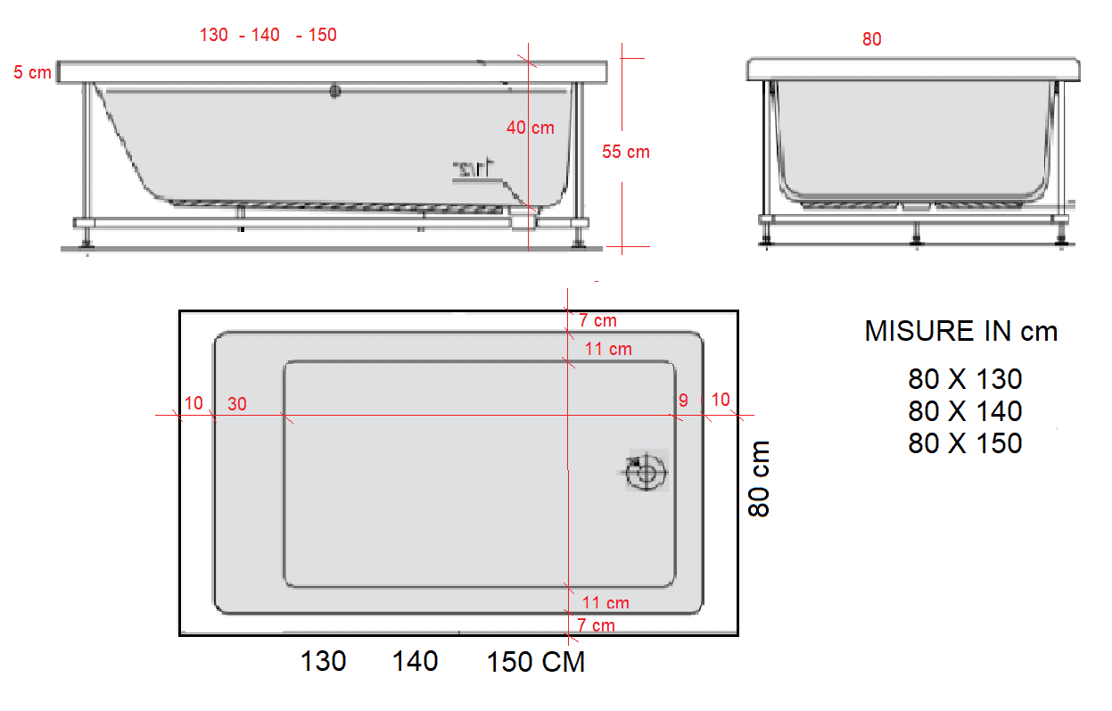 PRATIKA 80x150 VASCA IDROMASSAGGIO