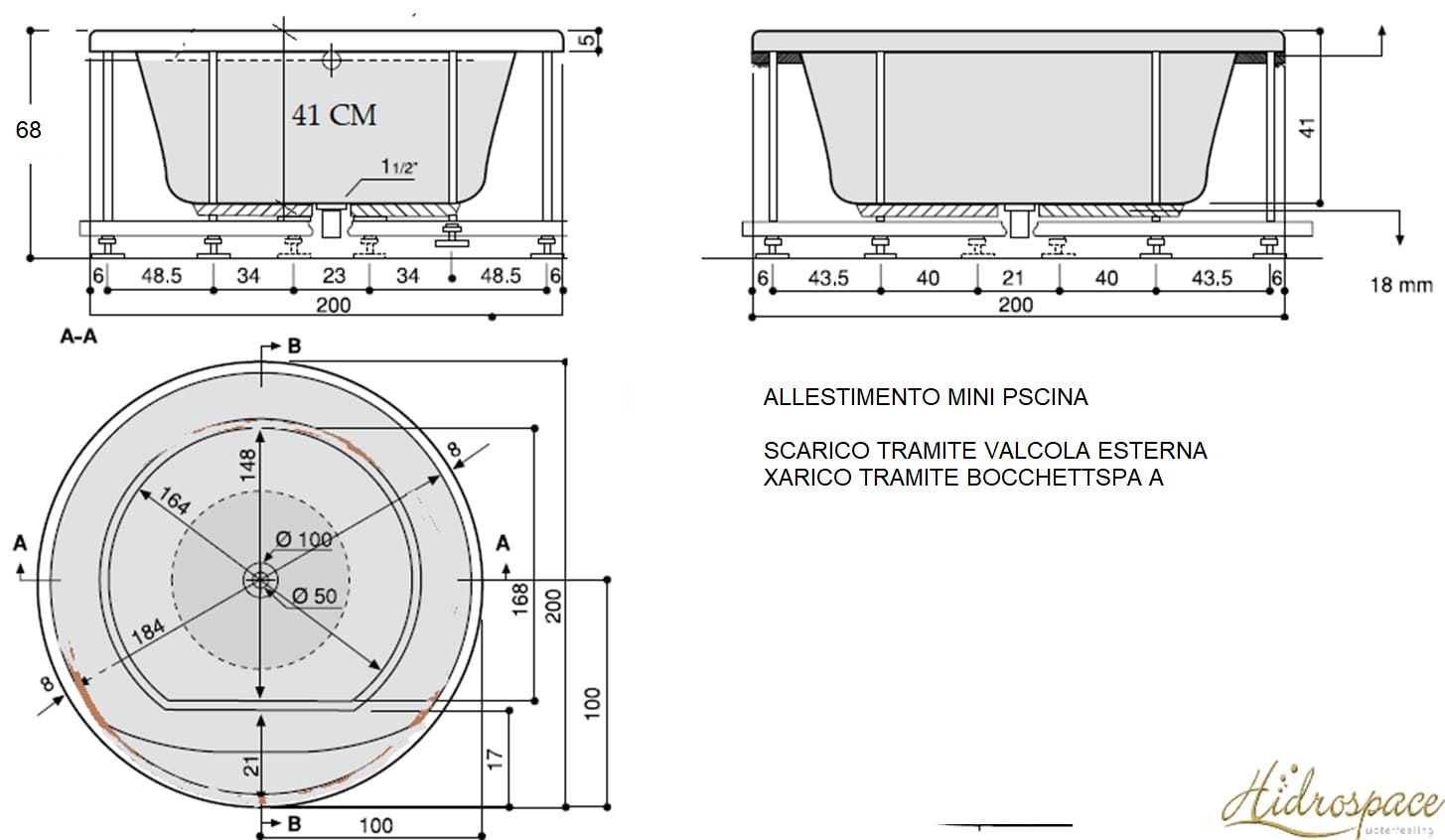 Tutto questo sostenuto da una struttura portante in acciaio zincato, con piedini regolabili montati su barre filettate, che distribuiscono con precisione ogni carico, proteggendo la vasca e le superfici su cui viene posata.