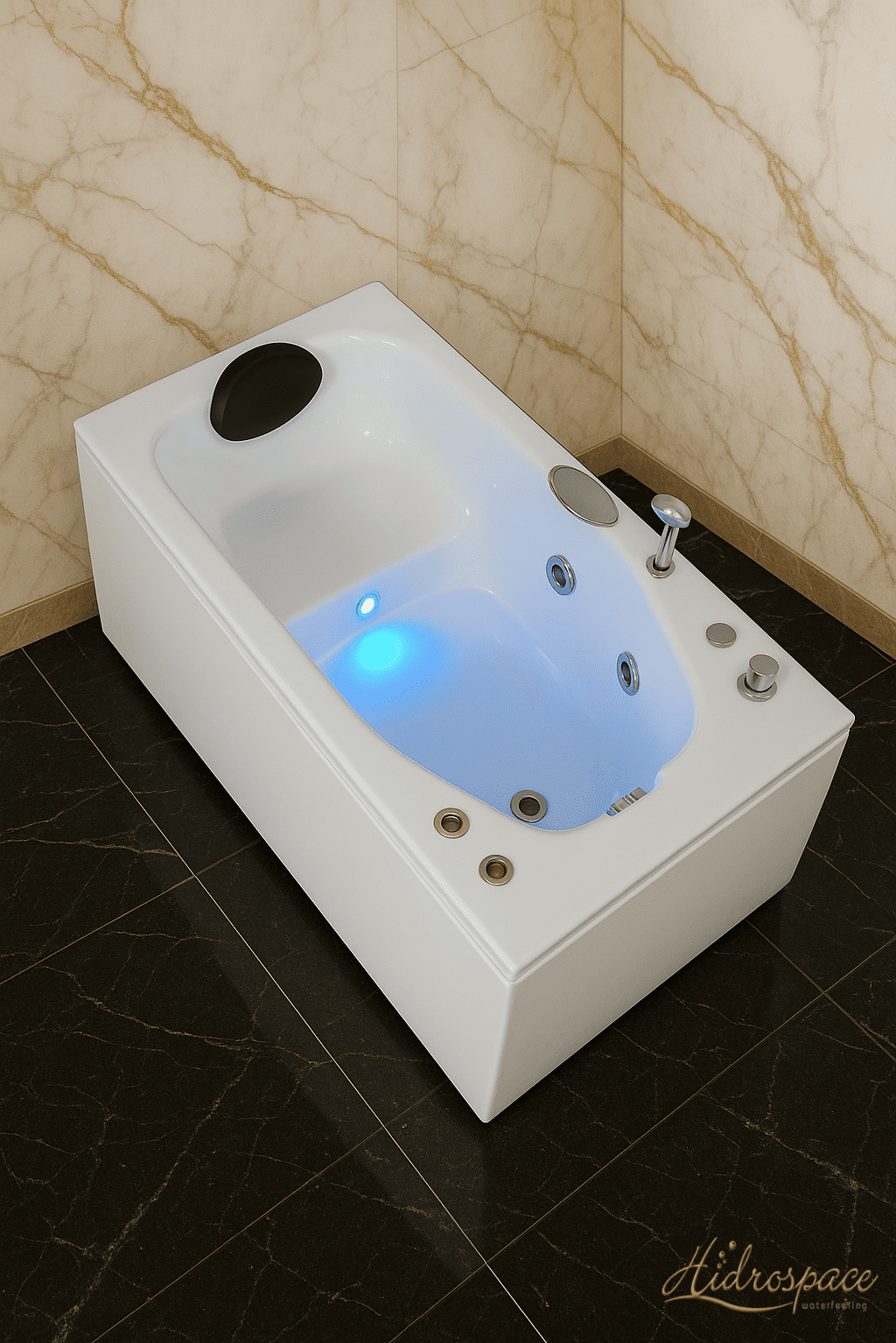 La vasca Small con seduta è una soluzione perfetta per chi ha spazi limitati ma non vuole rinunciare al comfort dell'idromassaggio. Grazie alla sua seduta ergonomica integrata, consente un bagno rilassante anche in pochi centimetri di spazio, senza comprometterne la funzionalità
