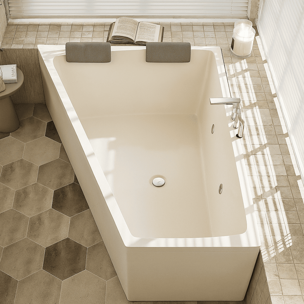 Pensata per ambienti raffinati ma dalle dimensioni contenute, la vasca da bagno asimmetrica 120 × 160 cm rappresenta un perfetto equilibrio tra forma funzionale e design essenziale.