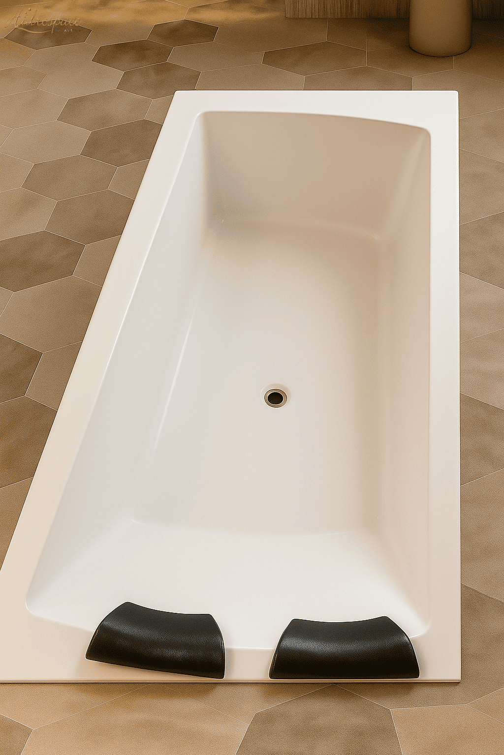 Un rifugio personale dove la linea moderna si fonde con una dolce inclinazione ergonomica, perfetta per lasciarsi avvolgere dal calore e dalla leggerezza dell’acqua.
