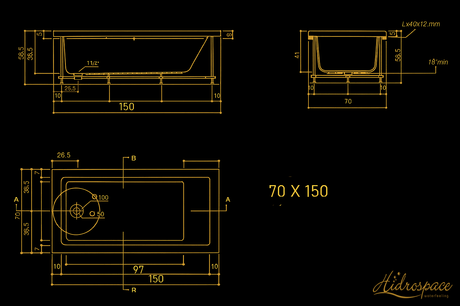 Le dimensioni, 70 cm di larghezza per 150 cm di lunghezza, si adagiano armoniosamente anche negli ambienti più raccolti, regalando profondità ed eleganza con i suoi 44 cm di bacino interno.