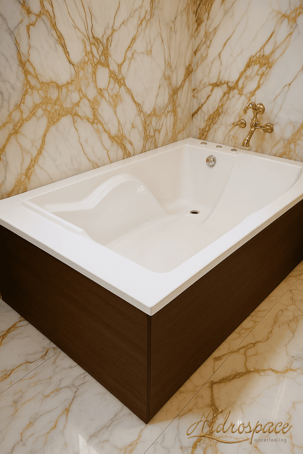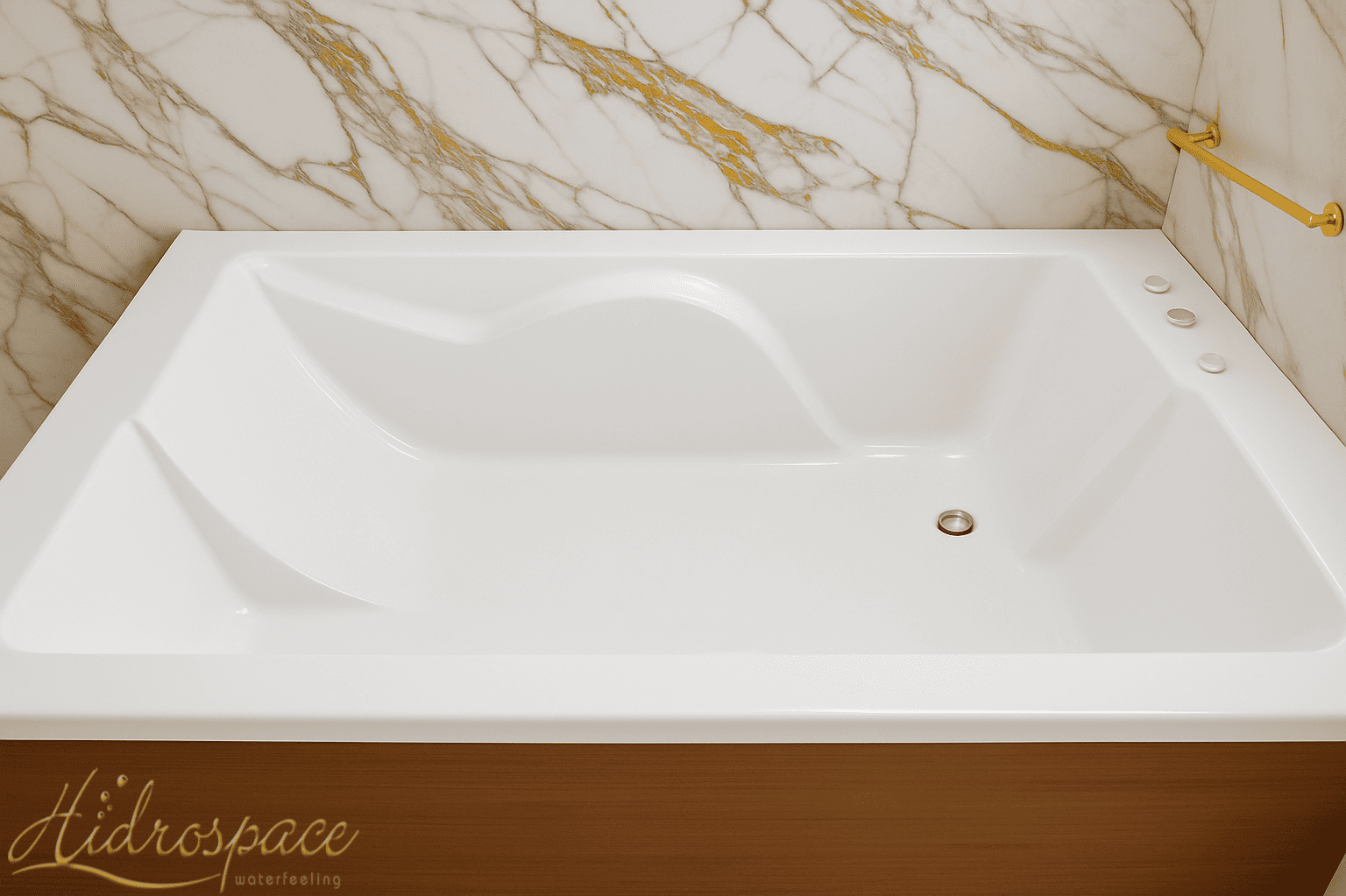 Vasca in acrilico sanitario con rinforzo sul fondo e corazzatura in vetroresina