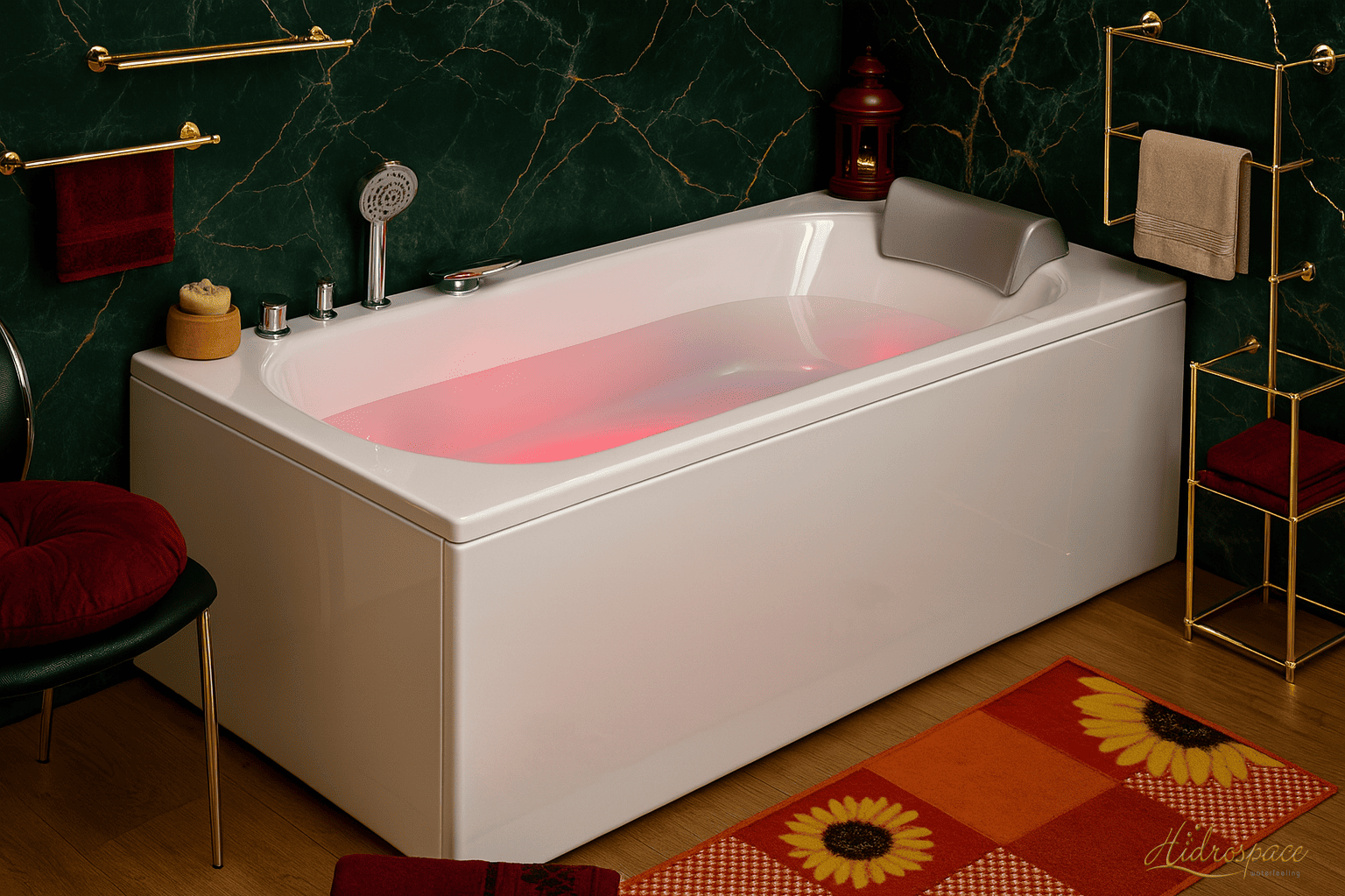 Sistemi idromassaggio e cromoterapia: lasciati avvolgere dal soffio delicato delle bolle e dai giochi di luce che accarezzano l’acqua.