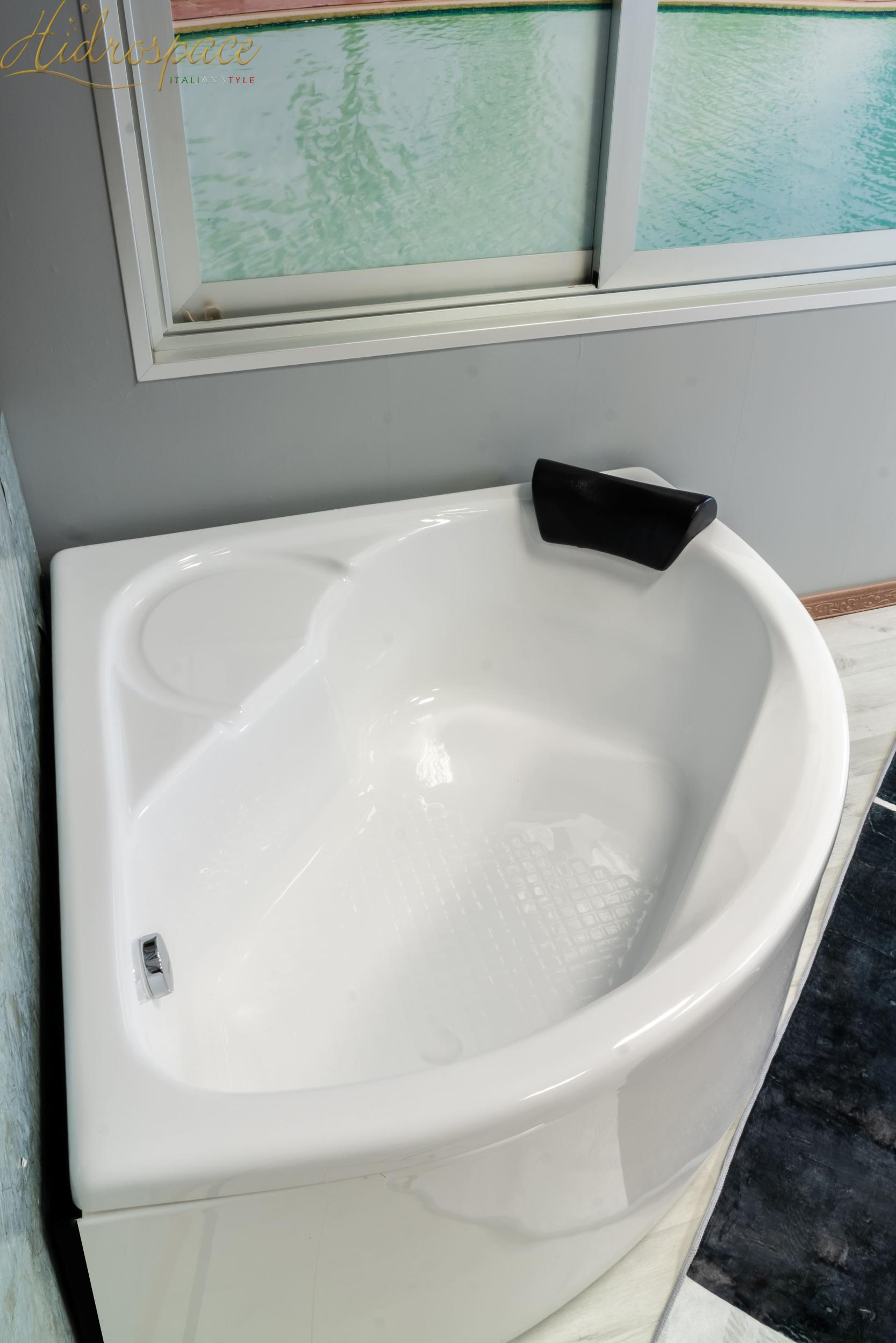 La vasca idromassaggio angolare IBIS 130 x 130 arricchisce la gamma delle vasche con seduta, comodissime nell'utilizzo. Lo stile è caratterizzato dalle linee morbide, arrotondate, precise e dalla seduta ben definita. Essendo caratterizzata da misure 130 x 130 cm è possibile collocarla in quasi tutti i locali bagno esistenti senza la necessità di uno spazio troppo ampio. La comoda seduta nell'angolo permette di utilizzare la vasca non solo per il bagno ma anche per idromassaggiare diverse parti del corpo oppure effettuare una rilassante pedicure. La sua apertura negli angoli interni garantisce un volume interno assolutamente ampio e decisamente comodo da utilizzare anche in due. Il pannello frontale sobrio ed uniforme garantisce un aspetto armonioso ed equilibrato. Infatti, questa vasca idromassaggio è pensata per coloro i quali necessitano di un prodotto ampio, gradevole ed equilibrato, il tutto con un rapporto qualità prezzo assolutamente vantaggioso. È possibile inserirla in qualsiasi ambientazione bagno prescelta grazie alla sua duttilità. Come tutti i nostri prodotti è realizzata con uno stampo in acrilico bianco colato a caldo rinforzato con vetroresina. L'acrilico utilizzato è di nuova generazione denominato "Lucite". Rispetto alle lastre acriliche coestruse, che hanno una superficie meno resistente sia alle abrasioni che agli agenti chimici, Lucite è diverso e viene realizzato da acrilico fuso. Questo materiale è più resistente sulla superficie, colorato in tutto lo spessore, non perde colore e non è poroso.