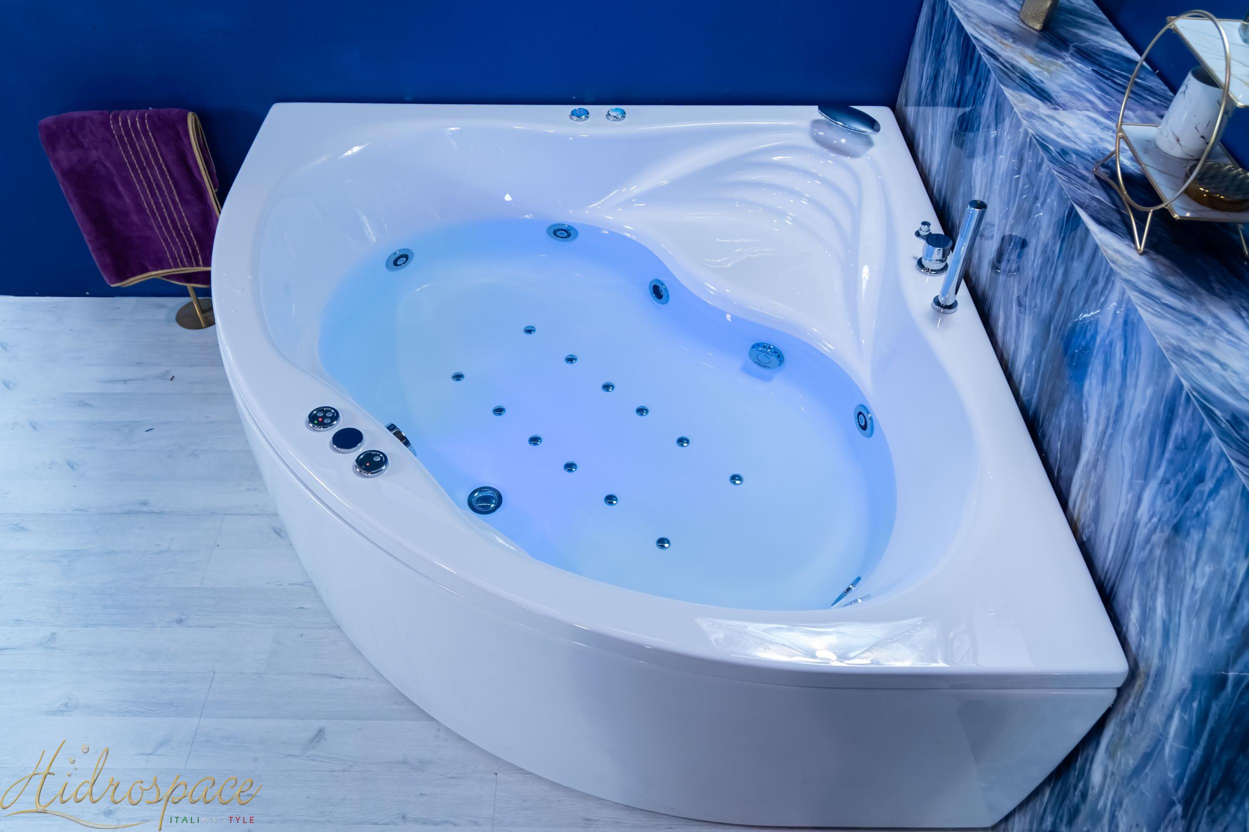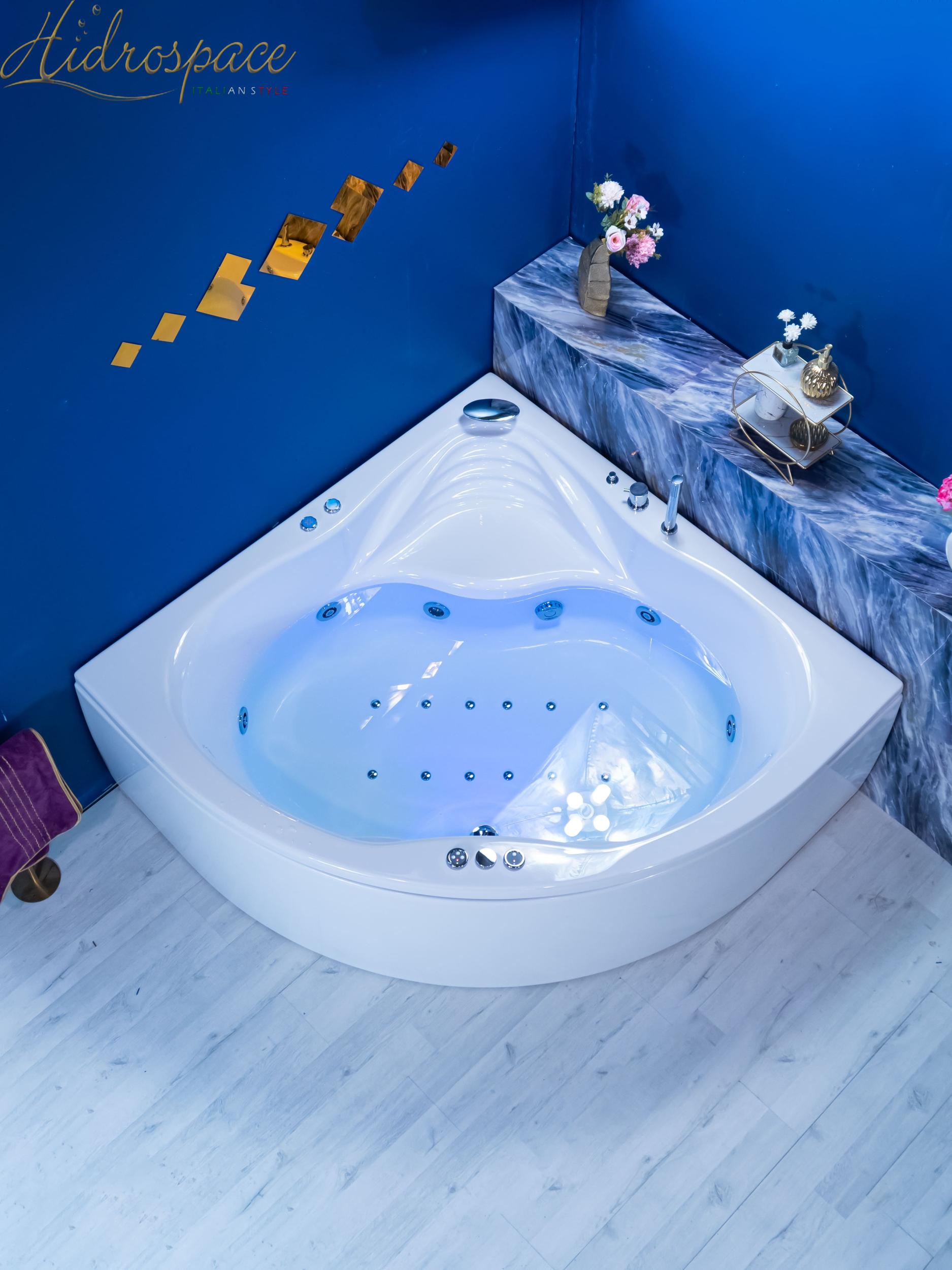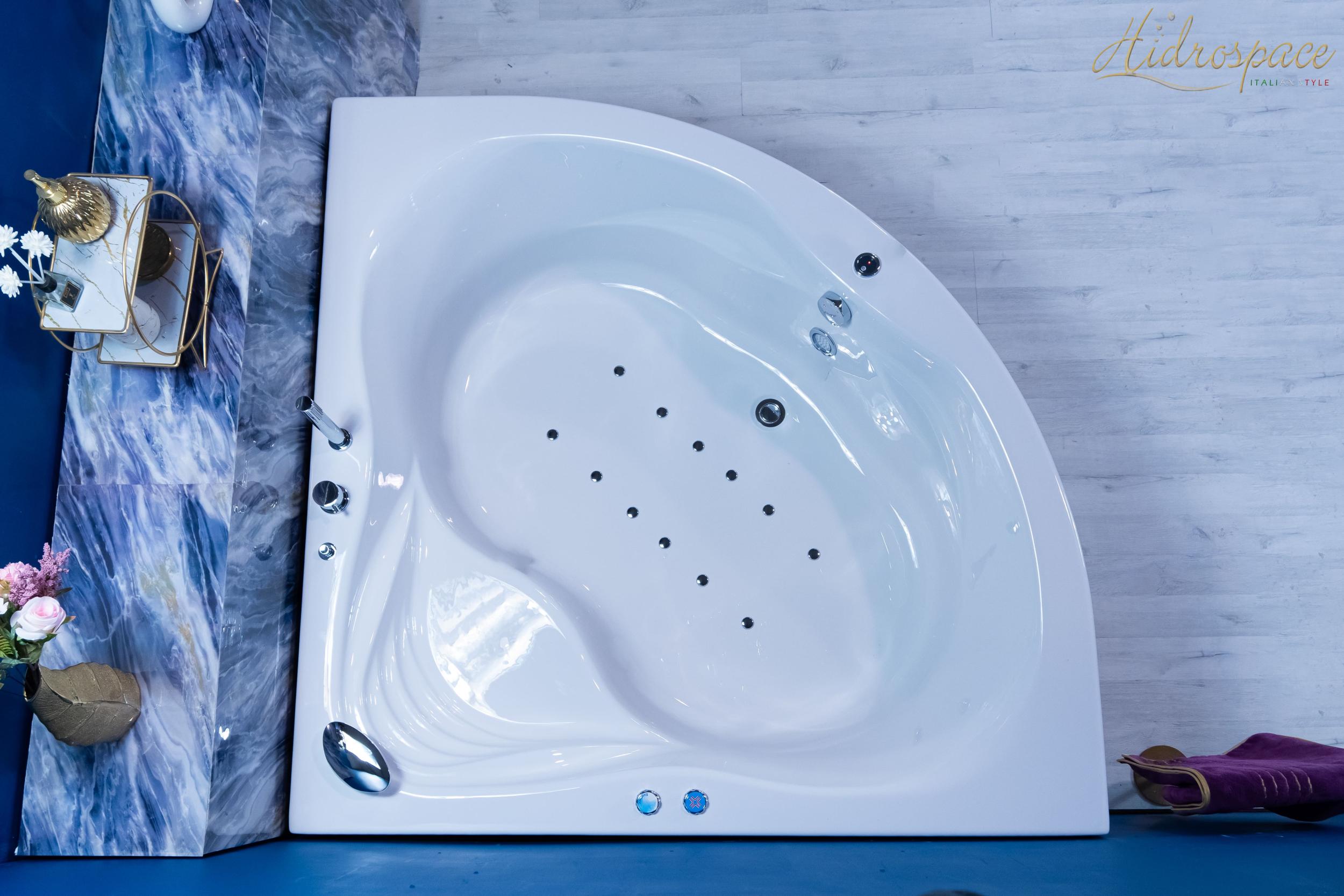 La vasca idromassaggio angolare VICTORIA150 x 150, è la sintesi funzionale delle vasche ad angolo. VICTORIA 150 x 150 ha delle forme morbide ed è il frutto di un'esperienza pluriennale sulle vasche da bagno angolari. La vasca idromassaggio angolare VICTORIA 150 x 150, è caratterizzata dalla presenza contemporanea nell'angolo di una caduta a cascata e dalla presenza della comoda seduta. VICTORIA 150 x 150, è la regina delle vasche idromassaggio angolari grazie alle linee eleganti e raffinate e alla sua funzionalità. La sua cascata nell'angolo della vasca la contraddistingue da tutte le altre vasche. Questa vasca idromassaggio angolare è una delle più apprezzate della nostra collezione. Grazie alle sue linee morbide e raffinate riesce ad arricchire qualunque ambiente bagno impreziosendolo ed aggiungendo un oggetto di arredo di notevole spessore estetico. Oltre alle sue indiscusse doti estetiche, questa vasca idromassaggio angolare garantisce una funzionalità senza eguali. Infatti, grazie allo sfruttamento interno assolutamente armonico ed ergonomico permette di usufruire di una vasca tra le più comode in commercio. Lo sfruttamento efficiente del volume interno, permette l'utilizzo della vasca anche a due persone in assoluta comodità. Questa vasca idromassaggio angolare è pensata e realizzata per coloro i quali necessitano di un prodotto esteticamente all'avanguardia ma allo stesso tempo estremamente funzionale.